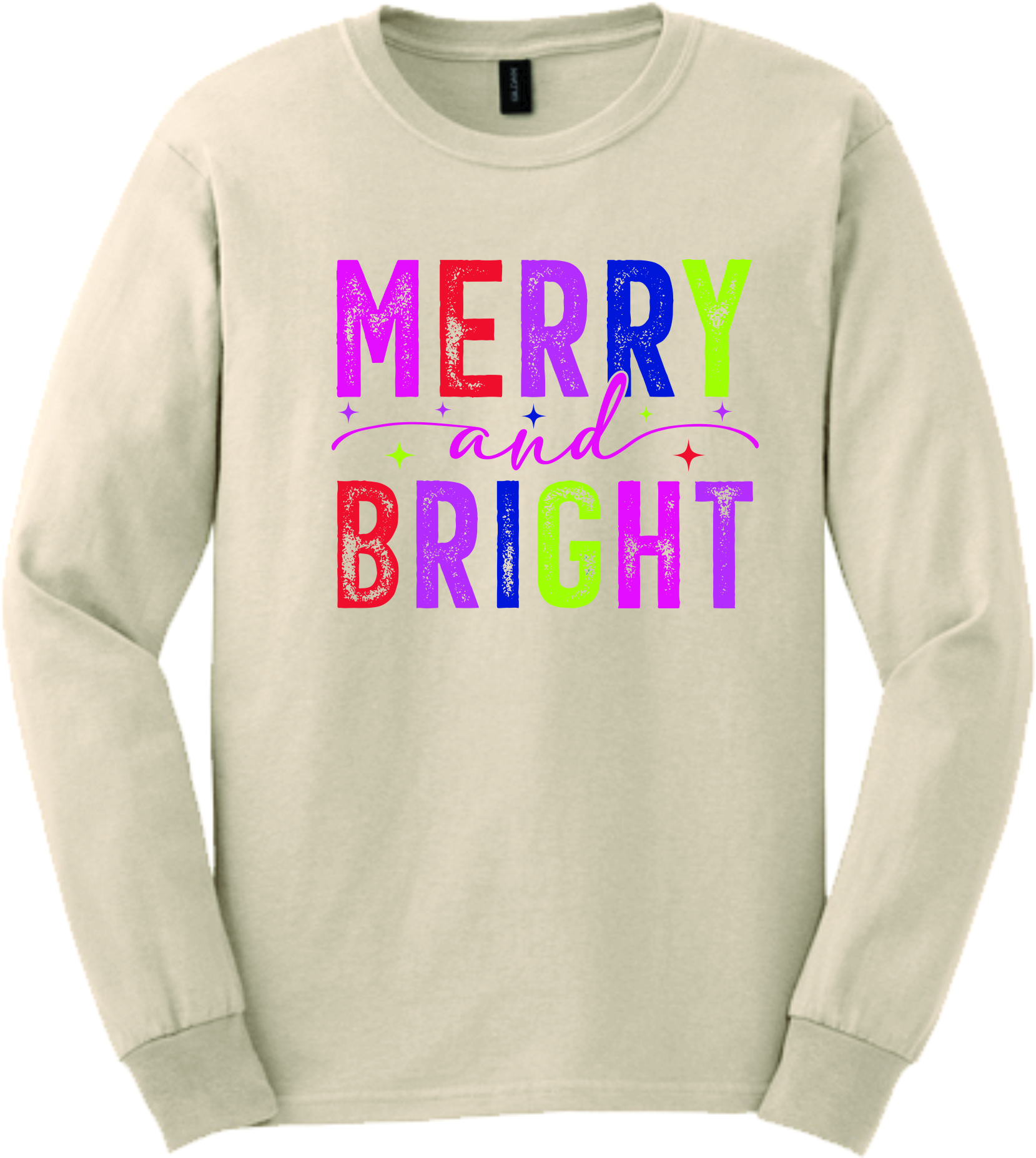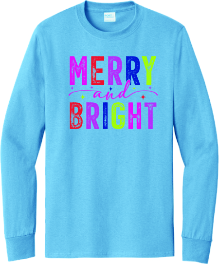 Product Description New LONG SLEEVE Ultra Cotton in Atomic Blue and Natural with Merry & Bright graphic on full front. Other Details NOTE: Port & Company Brand may be used for Azalea (Sangria) color